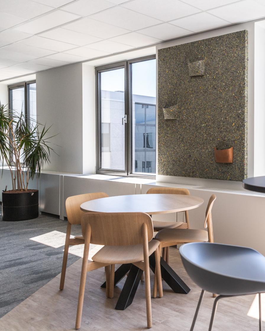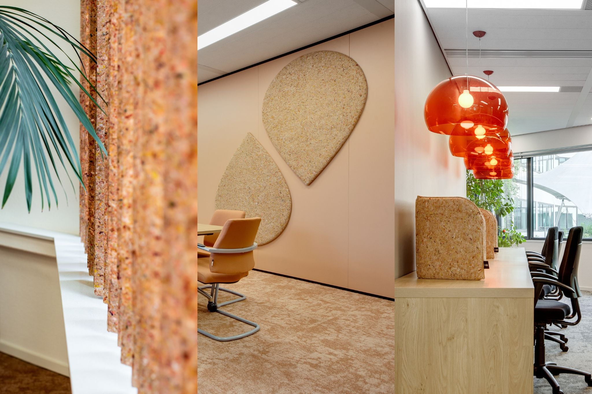 Het resultaat is een frisse, rustige werkplek met een sterke, duurzame uitstraling — een mooi voorbeeld van hoe akoestiek, circulair denken en stijl samenkomen.