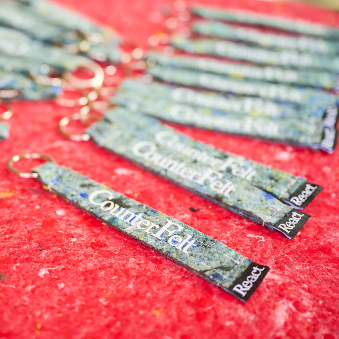 Voor React maakten we you-felt in rood en een mixkleur, gemaakt van voetbal t-shirts die anders verloren zou gaan. Het materiaal werd door React ingezet voor de ontwikkeling en presentatie van hun duurzame oplossingen.
