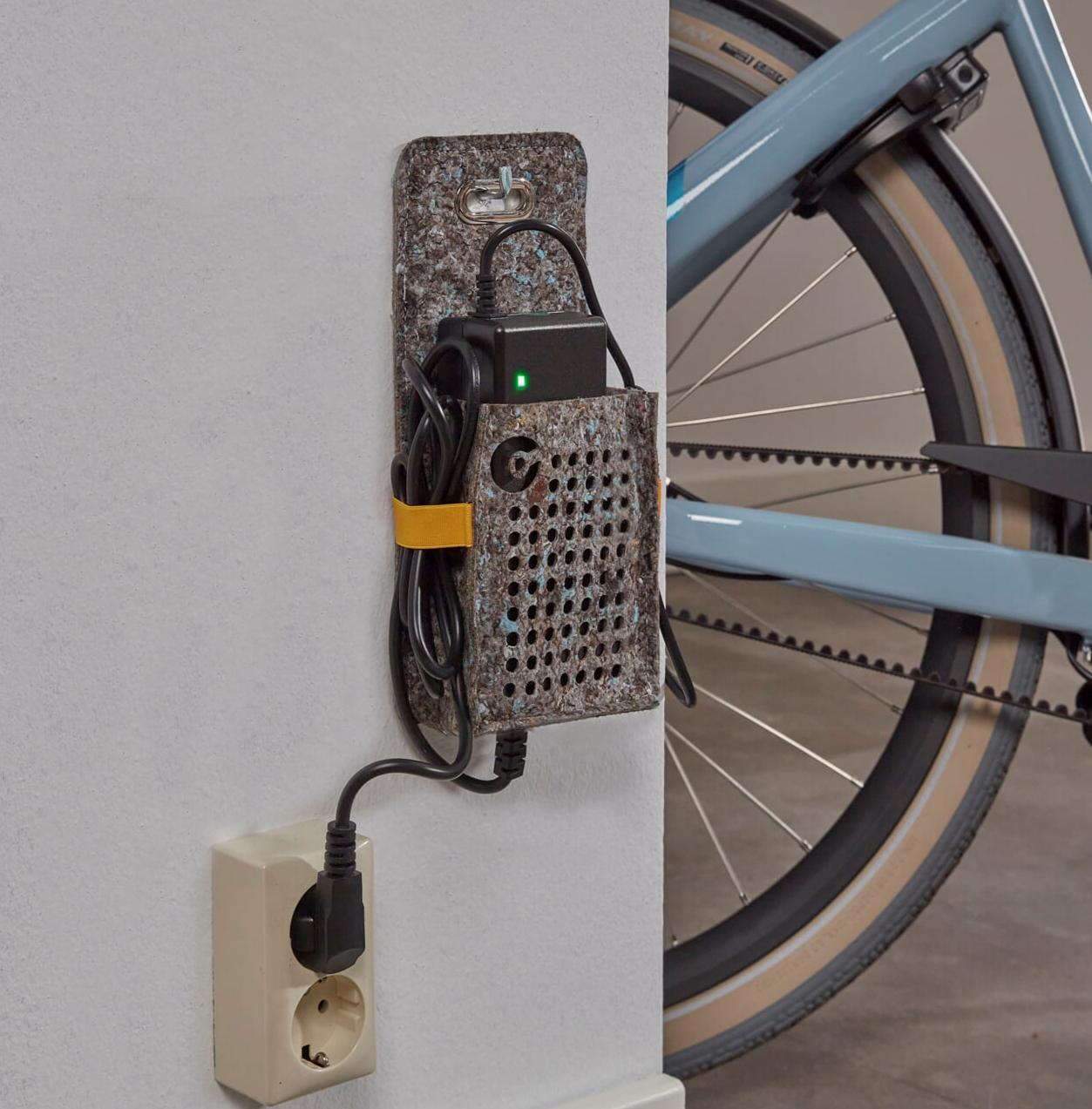 Voor Cortina hebben we na de fietstas nu ook de Venice acculaderhouder gemaakt in de projectkleur Efteling Forest Brown. Dankzij deze laderhouder voorkom je een wirwar van kabels in je schuur of garage.