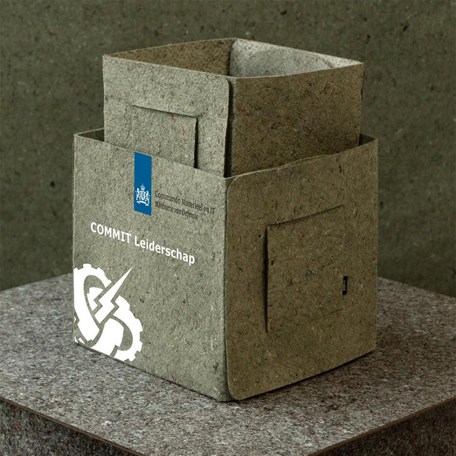 Voor het Commando Materieel en IT van het Ministerie van Defensie maken we bij i-did op regelmatige basis onboarding pakketten en kantooraccessoires in de kleur Defence Green, gemaakt van gerecyclede uniformen van defensie.