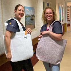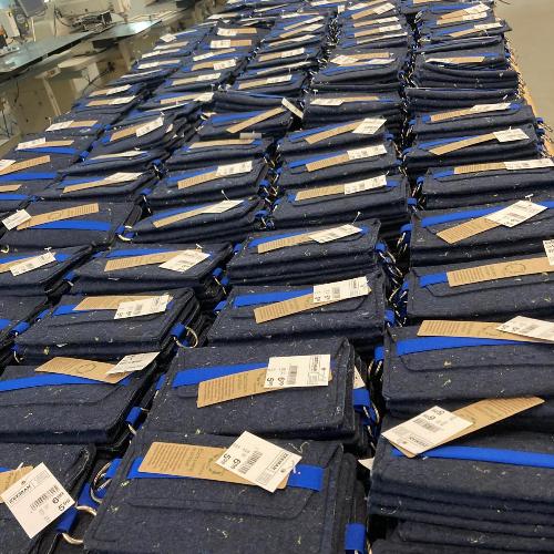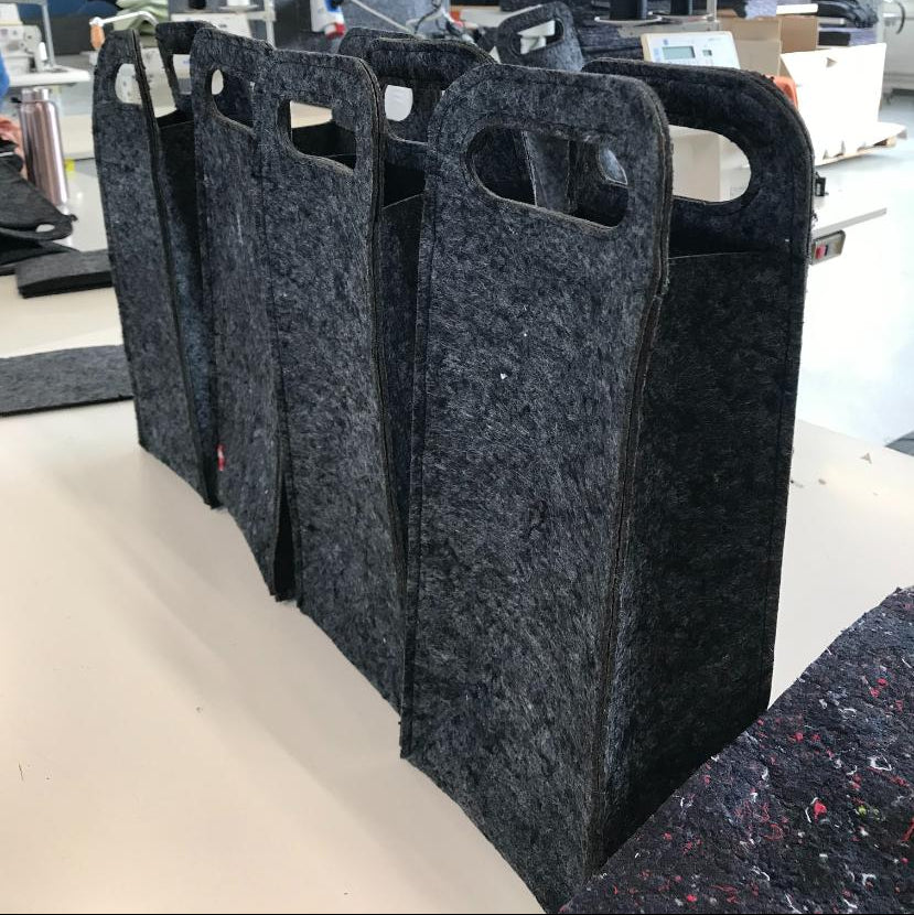 De oude bedrijfskleding van zorginstelling Warande is bij i-did gerecycled textiel tot hun eigen vilt. Daarna zijn er in ons sociale atelier maar liefst 1500 tassen van gemaakt voor hun personeel die enthousiast werden ontvangen.