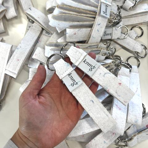 Voor Artsenfederatie KNMG maakten we sleutelhangers voorzien van hun eigen logo. Uiteraard kozen zij voor ons Care White vilt, gemaakt van gerecyclede verpleegkundigen uniformen. In opdracht voor Regalis.
