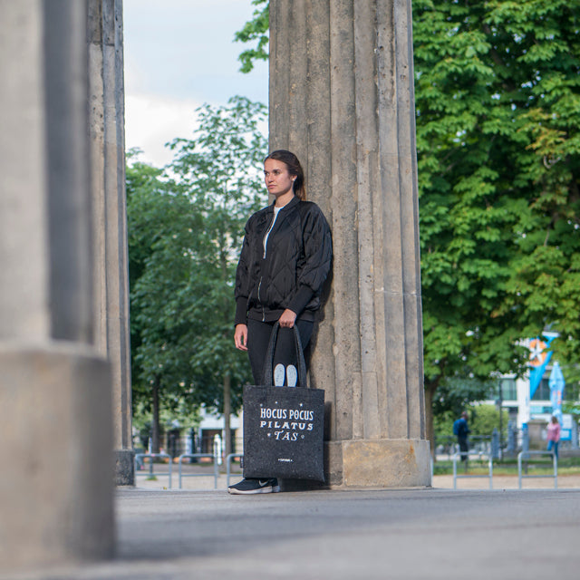 Branding op onze tassen van gerecycled textiel? Yes! Samen met Superdik hebben een toffe collectie tassen bedrukt met de tekst: "Hocus Pocus Pilatus Pas" tas.