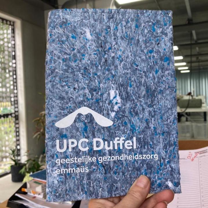 Duurzame kerstcadeau’s voor UPC Duffel! Van 1.000 kg oude bedrijfskleding werd you-felt geproduceerd en daarvan maakten we tassen, hoesjes voor notitieboekjes en sleutelhangers, voorzien van eigen branding.