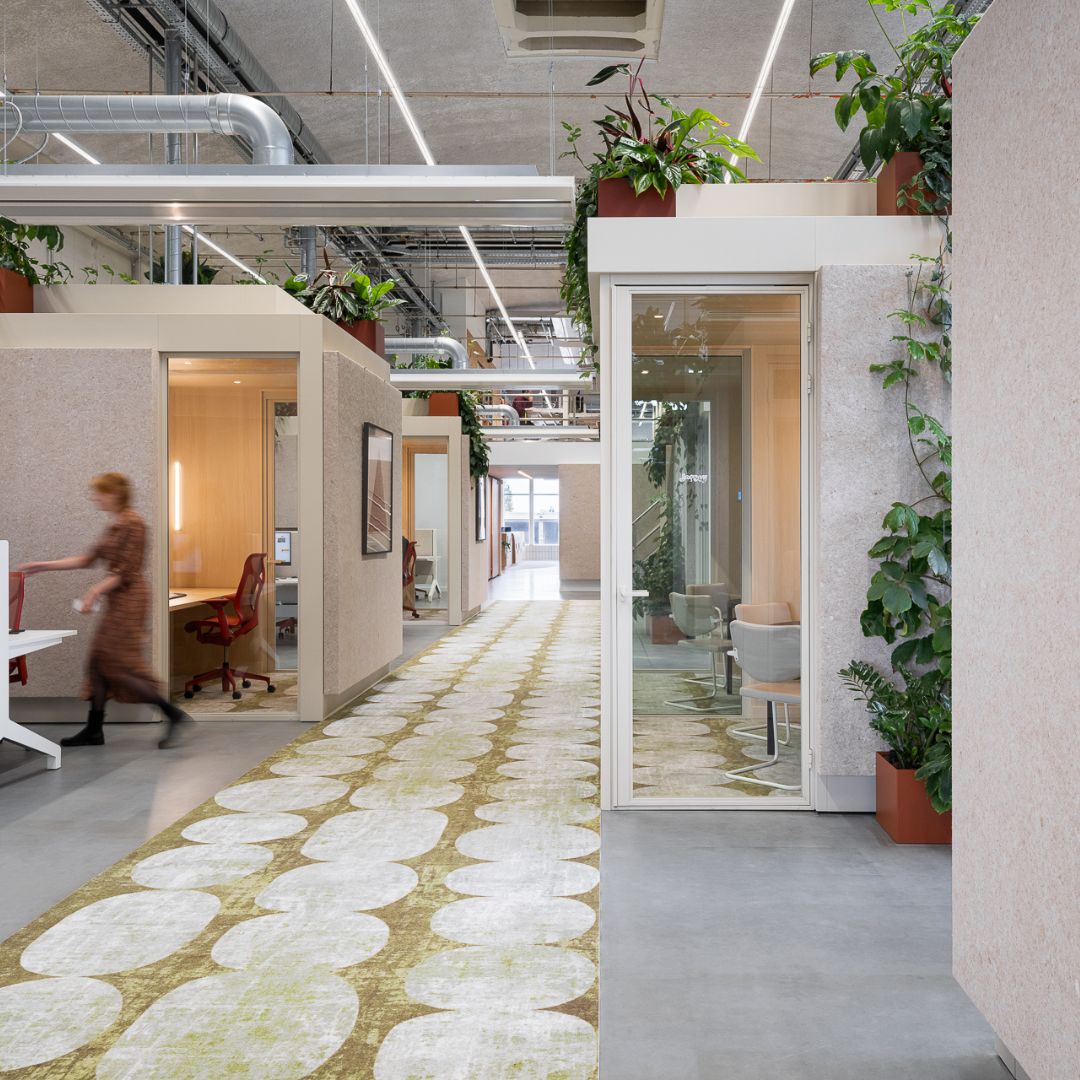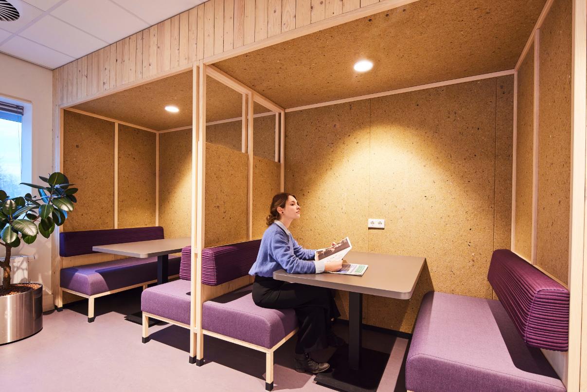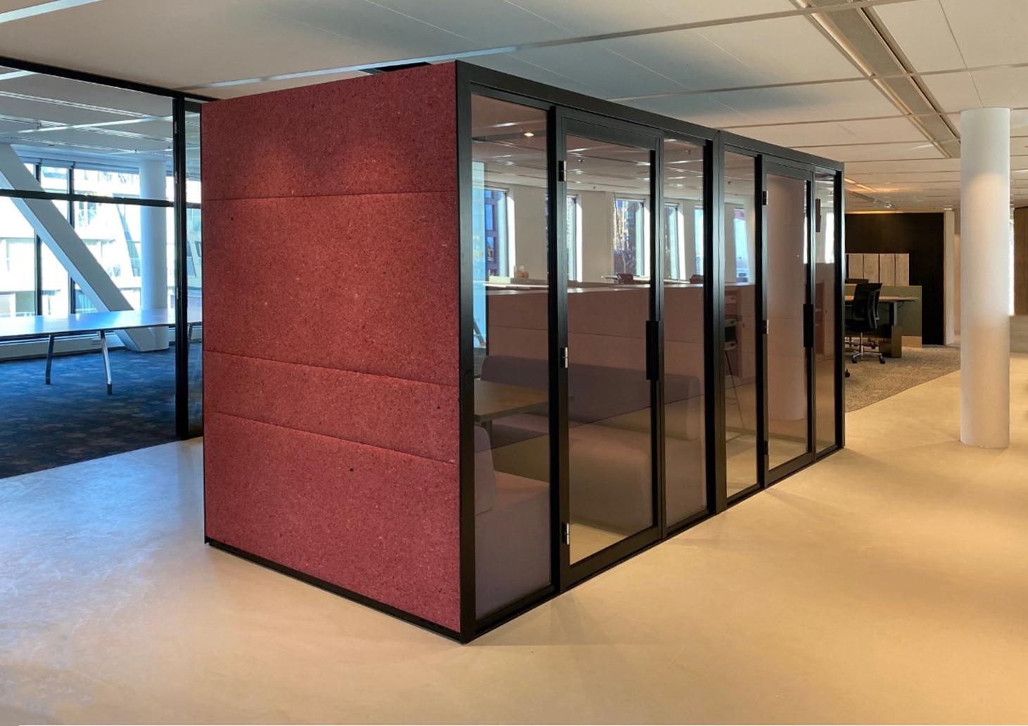 Ons vilt wordt door Ecolution Design toegepast in verschillende projecten met meeting pods en vergelijkbare werkoplossingen, waarbij duurzaamheid en akoestisch comfort hand in hand gaan.