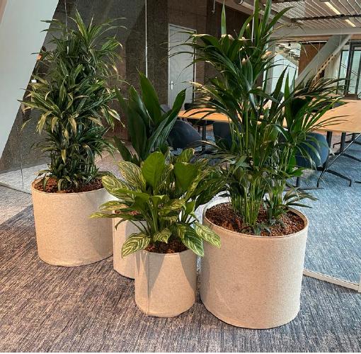 Vilten plantenbakken door Olga Tange, interieurarchitect bij Tétris design x build. Ook werd circa 2.300 m² i-felt gebruikt in vijf verschillende kleuren op diverse wanden van onder andere pods in samenwerking met Zipperwall.