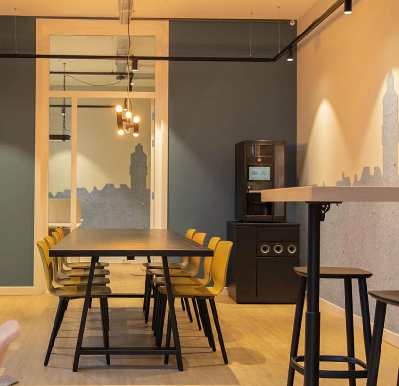 De Social Impact Factory heeft ons vilt o.a. als behang op muren van vergaderruimtes gebruikt. Het prachtige KLM Sky Blue vilt matcht heel goed met de gele stoelen in de ruimte. De producten van i-did zijn op alle locaties en in verschillende ruimtes te bewonderen.